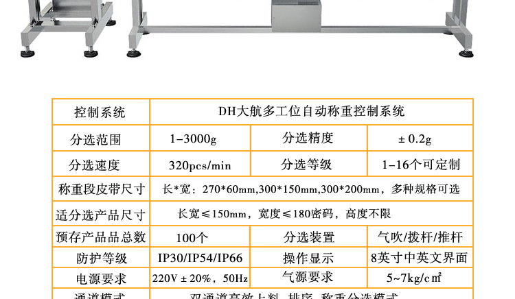 分選范圍 | 1-3000g | 分選精度 | ±0.3g |