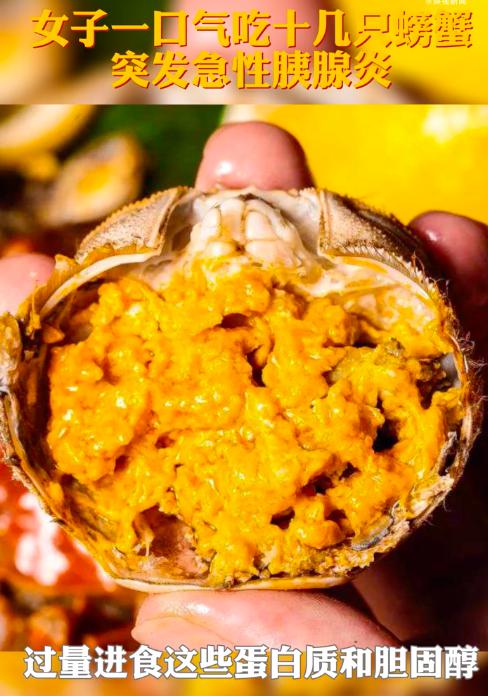 同濟(jì)醫(yī)院醫(yī)生表示,過量食用螃蟹這種高蛋白、高脂肪飲食非常同意誘發(fā)急性胰腺炎。